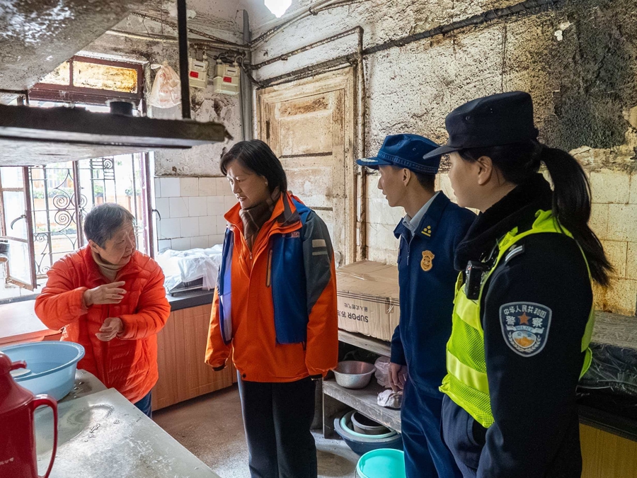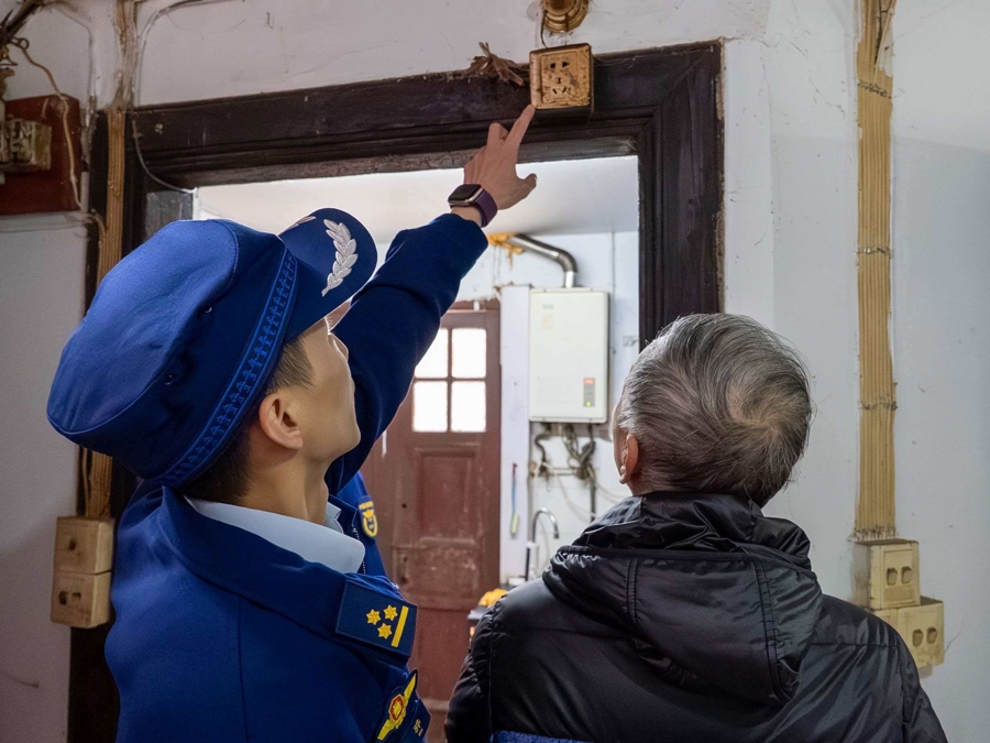 “王阿婆,电暖器要远离窗帘,插线板别插太多电器,用完记得及时断电。”12月16日,在长春路余庆坊,虹口消防救援站消防员门志超一边仔细检查84岁独居老人王阿婆家中的用电、用火情况,一边耐心讲解消防安全注意事项,并为老人发放《家庭防火“十不要”》安全提示贴。这暖心的一幕,正是虹口消防推行网格化管理,创新基层火灾防控治理的生动缩影。
